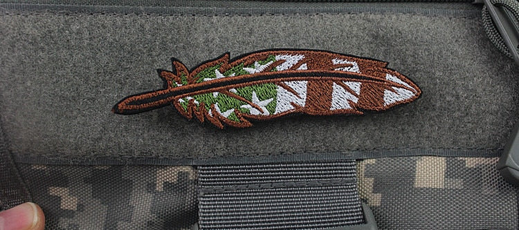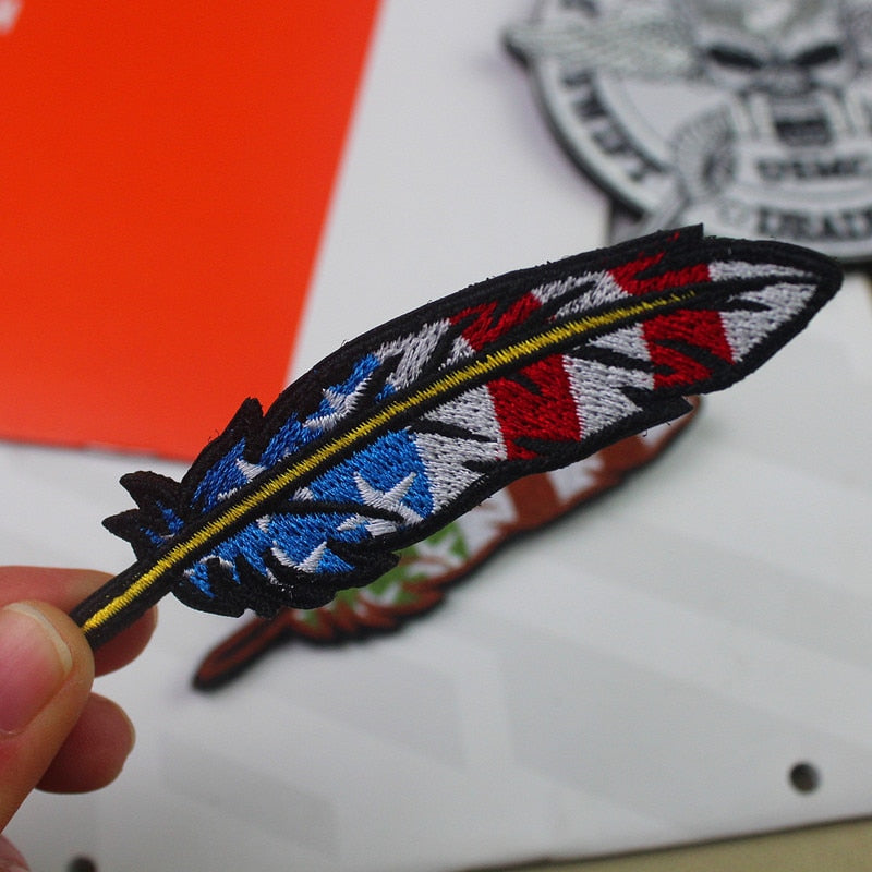 Each Feather Flag Embroidered Sew On Velcro Patch is made of 100% rayon for durability and twill fabric for crisp clean colors. It comes to you individually poly bagged. Great Feather Flag Embroidered Sew On Velcro Patch for all groups and individuals looking to share their individual styles.