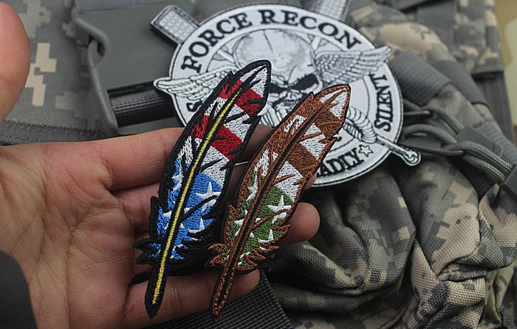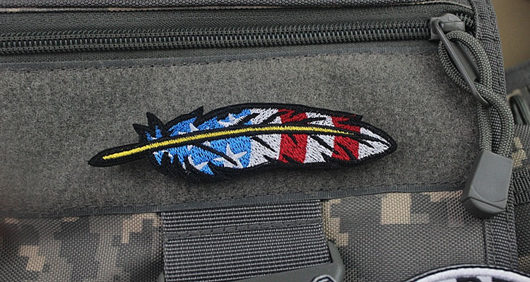 Feather Flag Embroidered Sew On Velcro Patch Description: