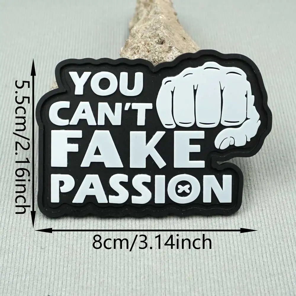 Fist 'You Can't Fake Passion' PVC Rubber Velcro Patch Description: