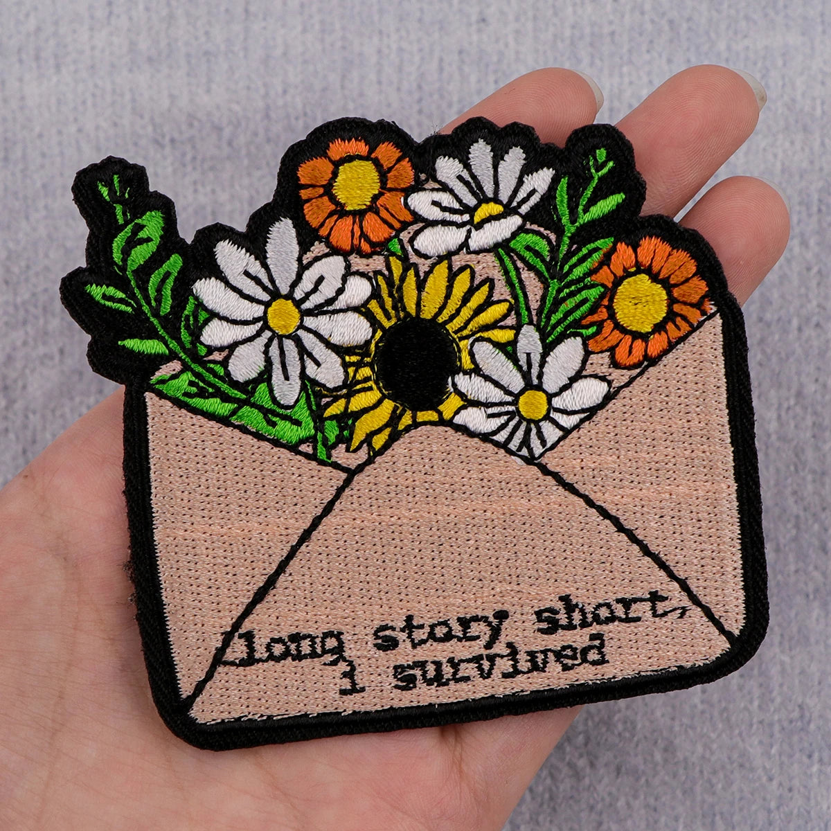 Flower Envelope 'Long Story Short I Survived' Embroidered Patch Description: