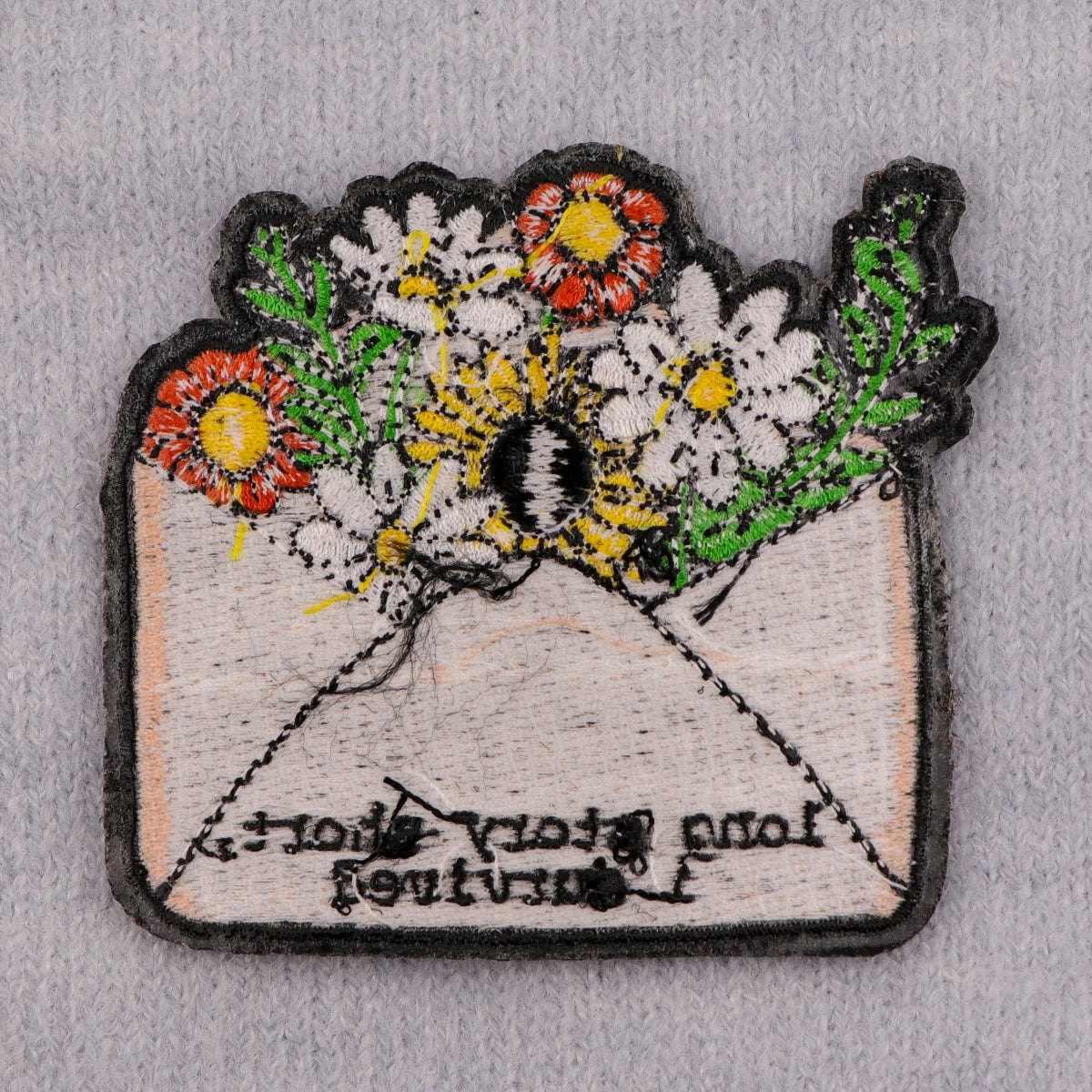 We recommend sewing on this Flower Envelope 'Long Story Short I Survived' Embroidered Patch for jackets, vests and heavy duty use. This Flower Envelope 'Long Story Short I Survived' Embroidered Patch can be ironed on to denim items.