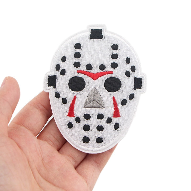 We recommend sewing on this Friday the 13th 'Classic Mask' Embroidered Sew Iron On Patch for jackets, vests and heavy duty use. This Friday the 13th 'Classic Mask' Embroidered Sew Iron On Patch can be ironed on to denim items.