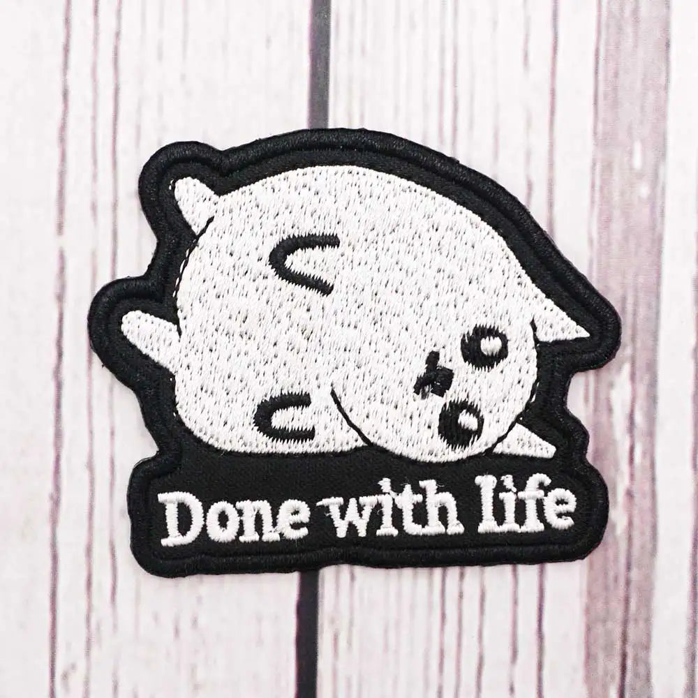 Order your Funny Cat 'Done with Life' Embroidered Velcro Patch today!