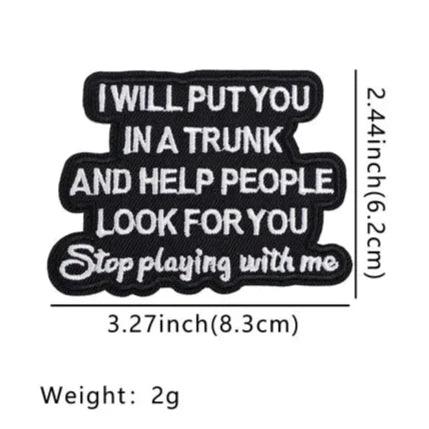 Funny 'I Will Put You In A Trunk and Help People Look For You' Embroidered Patch Description: