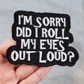 Funny Quote 'I'm Sorry Did I Roll My Eyes Out Loud?' Embroidered Patch