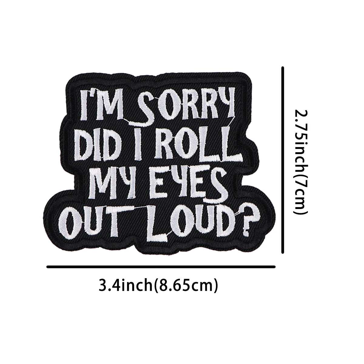 We recommend sewing on this Funny Quote 'I'm Sorry Did I Roll My Eyes Out Loud?' Embroidered Patch for jackets, vests and heavy duty use. This Funny Quote 'I'm Sorry Did I Roll My Eyes Out Loud?' Embroidered Patch can be ironed on to denim items.