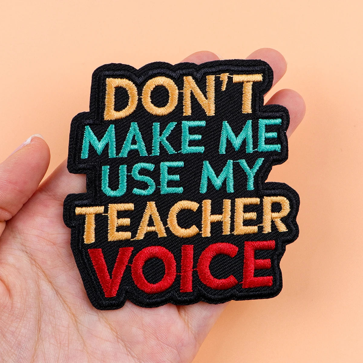 Funny Teacher 'Don't Make Me Use My Teacher Voice' Embroidered Patch Description: