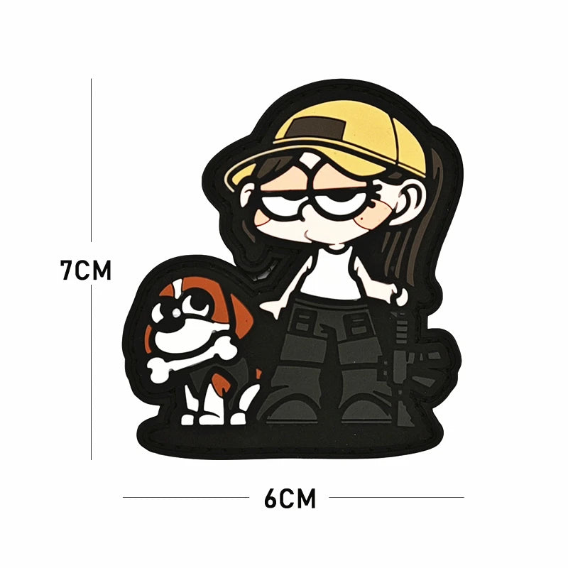Girl and Dog 'Tactical Gun' PVC Rubber Velcro Patch Description: