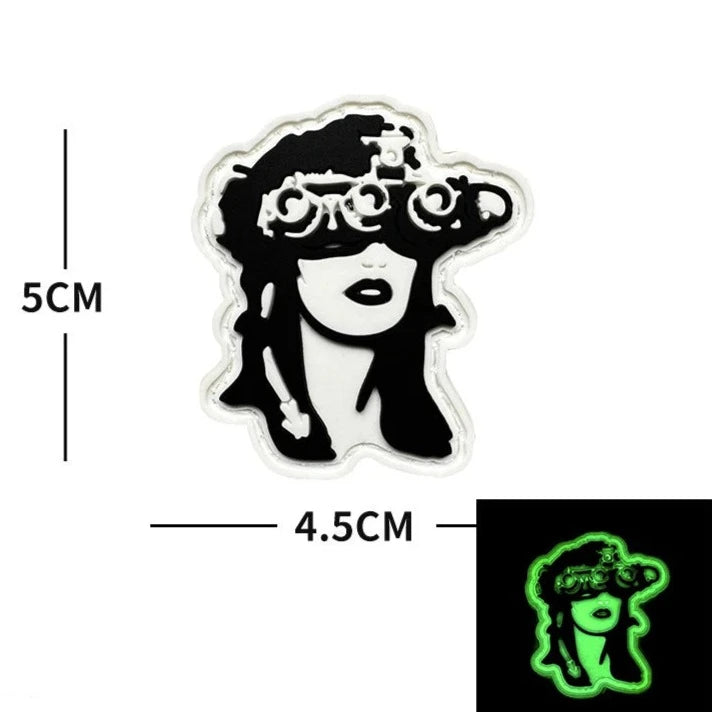 Order your Girl Head 'Night Vision Goggles | Luminous' PVC Rubber Velcro Patch today!