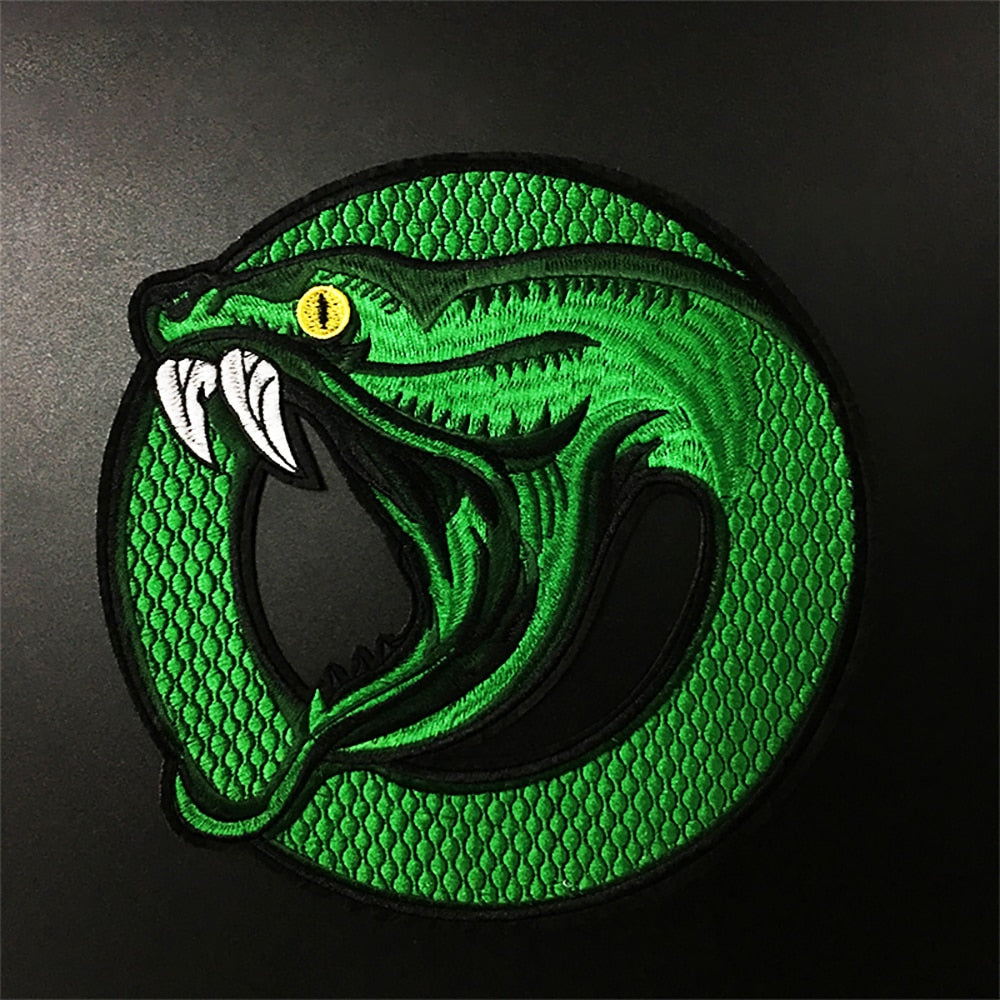 We recommend sewing on this Green Snake 'Round' Embroidered Patch for jackets, vests and heavy duty use. This Green Snake 'Round' Embroidered Patch can be ironed on to denim items.