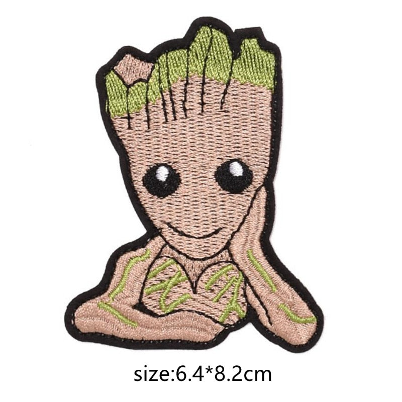 We recommend sewing on this Groot 'Day Dreaming' Embroidered Sew Iron On Patch for jackets, vests and heavy duty use. This Groot 'Day Dreaming' Embroidered Sew Iron On Patch can be ironed on to denim items.