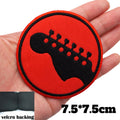 We recommend sewing on this Guitar Headstock 'Six Tuning Pegs' Embroidered Velcro Patch for jackets, vests and heavy duty use. This Guitar Headstock 'Six Tuning Pegs' Embroidered Velcro Patch can be ironed on to denim items.