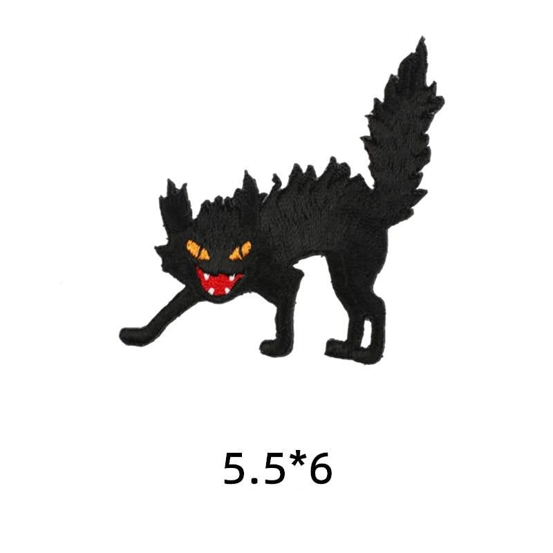 We recommend sewing on this Halloween 'Creepy Cat' Embroidered Sew Iron On Patch for jackets, vests and heavy duty use. This Halloween 'Creepy Cat' Embroidered Sew Iron On Patch can be ironed on to denim items.