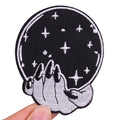 We recommend sewing on this Halloween 'Witch Hand | Crystal Ball' Embroidered Patch for jackets, vests and heavy duty use. This Halloween 'Witch Hand | Crystal Ball' Embroidered Patch can be ironed on to denim items.