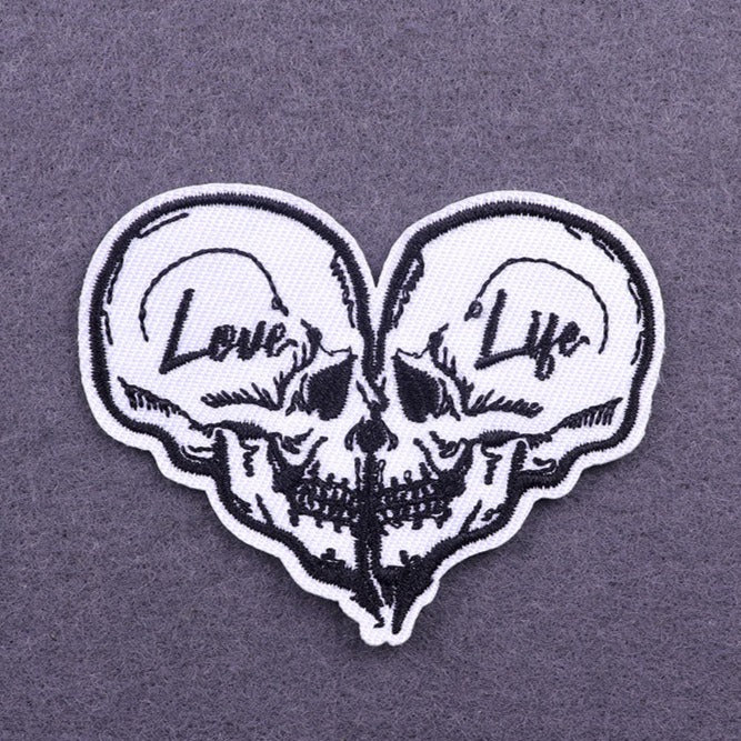 Turn some heads with our Heart Skull 'Love Life' Embroidered Patch! Our Heart Skull 'Love Life' Embroidered Patch is great for adding to denim jackets, bags, and more. Our Heart Skull 'Love Life' Embroidered Patch is made for the most demanding of necessities.