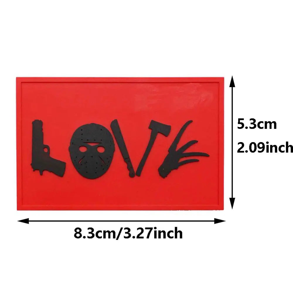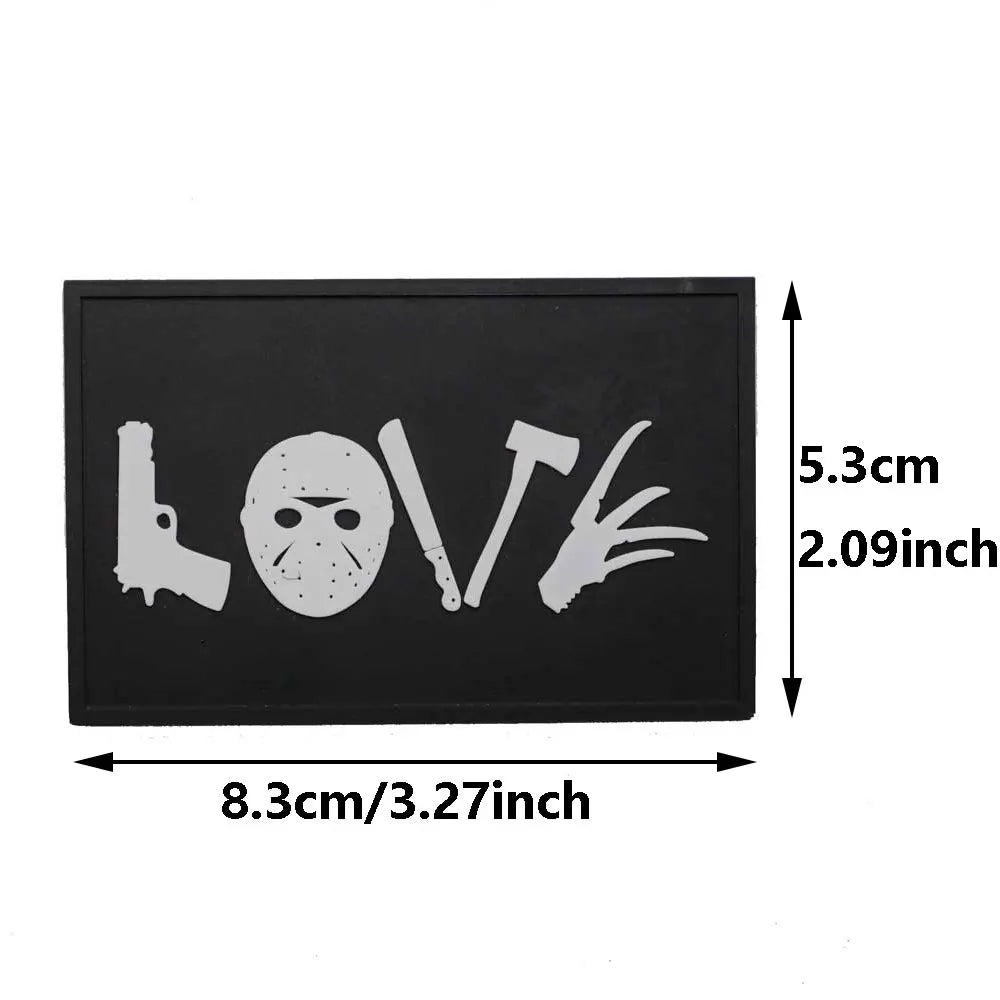 Horror 'LOVE Scary Weapons' PVC Rubber Velcro Patch Description: