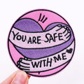 Turn some heads with our Hugging Purple Heart 'You Are Safe With Me' Embroidered Patch! Our Hugging Purple Heart 'You Are Safe With Me' Embroidered Patch is great for adding to denim jackets, bags, and more. Our Hugging Purple Heart 'You Are Safe With Me' Embroidered Patch is made for the most demanding of necessities.