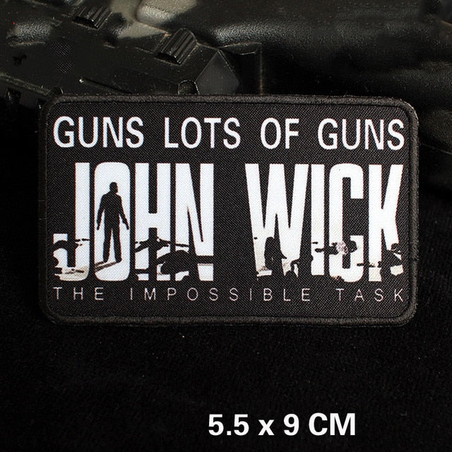 Order your John Wick 'Guns Lots Of Guns | The Impossible Task' Embroidered Sew On Velcro Patch today!