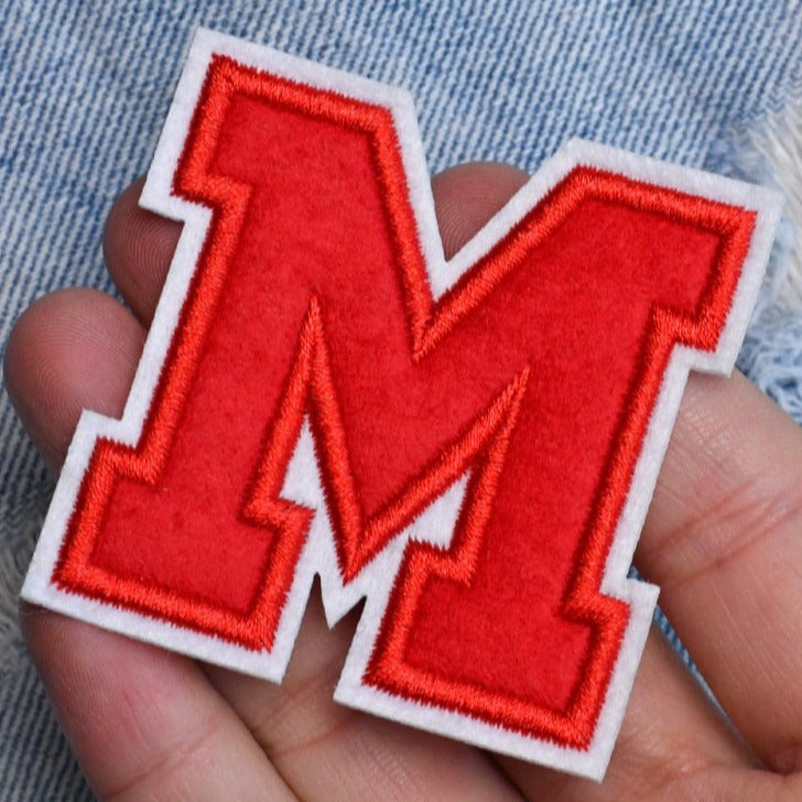 We recommend sewing on this Letter M 'Red' Embroidered Patch for jackets, vests and heavy duty use. This Letter M 'Red' Embroidered Patch can be ironed on to denim items.