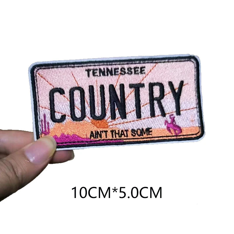 We recommend sewing on this License Plate 'Tennessee Country' Embroidered Patch for jackets, vests and heavy duty use. This License Plate 'Tennessee Country' Embroidered Patch can be ironed on to denim items.