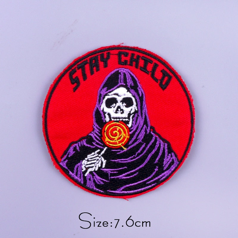 We recommend sewing on this Masters of the Universe 'Skeletor | Stay Child' Embroidered Sew Iron On Patch for jackets, vests and heavy duty use. This Masters of the Universe 'Skeletor | Stay Child' Embroidered Sew Iron On Patch can be ironed on to denim items.