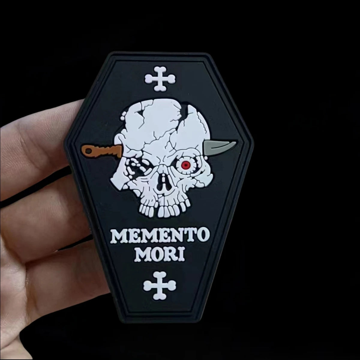 Each Memento Mori 'Knife in Skull | Cross' PVC Rubber Velcro Patch is made of 100% PVC for durability and rubber for crisp clean colors. It comes to you individually poly bagged. Great Memento Mori 'Knife in Skull | Cross' PVC Rubber Velcro Patch for all groups and individuals looking to share their individual styles.