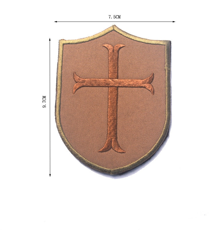 Military Tactical 'Crusader Cross Shield' Embroidered Velcro Patch Description: