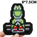 We recommend sewing on this Mushroom Kingdom Bros. Pixel 'Yoshi | Riding Kart' Embroidered Patch for jackets, vests and heavy duty use. This Mushroom Kingdom Bros. Pixel 'Yoshi | Riding Kart' Embroidered Patch can be ironed on to denim items.