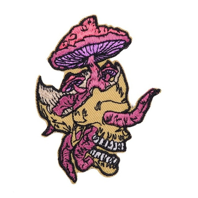 Turn some heads with our Mushroom Skull Embroidered Patch! Our Mushroom Skull Embroidered Patch is great for adding to denim jackets, bags, and more. Our Mushroom Skull Embroidered Patch is made for the most demanding of necessities.