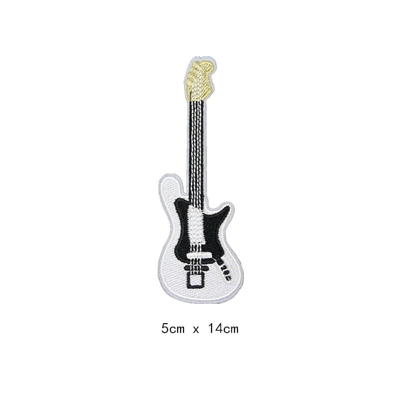 Music 'Electric Guitar | White' Embroidered Velcro Patch Description: