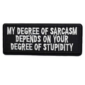 Order your 'My Degree Of Sarcasm Depends On Your Degree Of Stupidity' Embroidered Patch today!