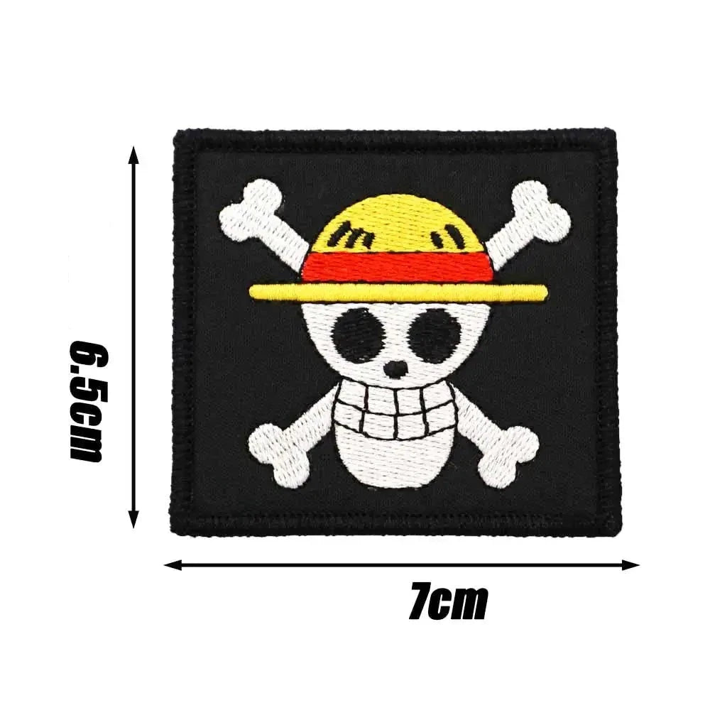 We recommend sewing on this One Piece 'Straw Hat Pirates Logo | Square' Embroidered Velcro Patch for jackets, vests and heavy duty use. This One Piece 'Straw Hat Pirates Logo | Square' Embroidered Velcro Patch can be ironed on to denim items.