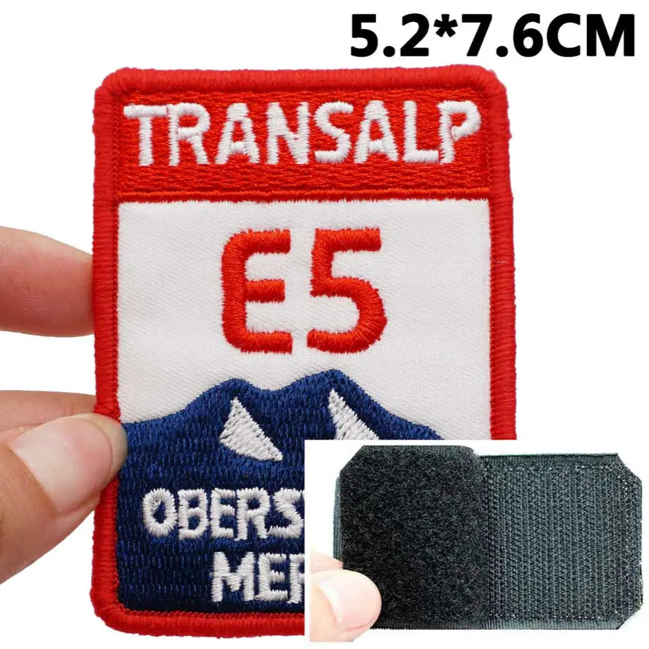 Outdoor Adventure 'Transalp E5 Oberstdorf Meran' Embroidered Velcro Patch Description: