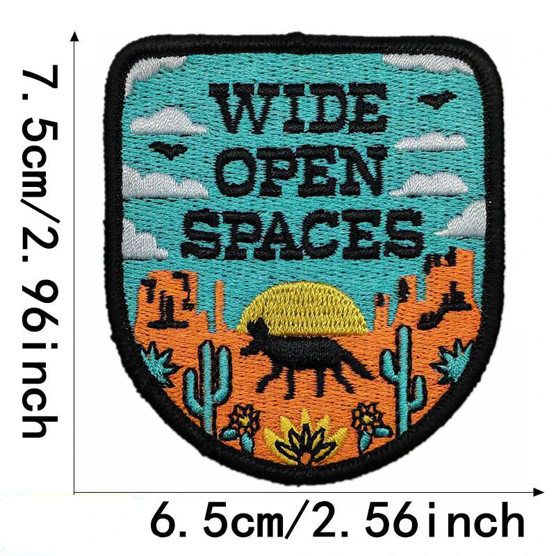 Turn some heads with our Outdoor Adventure 'Wide Open Spaces' Embroidered Patch! Our Outdoor Adventure 'Wide Open Spaces' Embroidered Patch is great for adding to denim jackets, bags, and more. Our Outdoor Adventure 'Wide Open Spaces' Embroidered Patch is made for the most demanding of necessities.