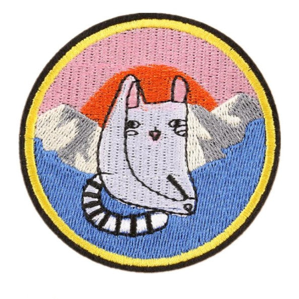 We recommend sewing on this Painting 'Cat Stretching' Embroidered Patch for jackets, vests and heavy duty use. This Painting 'Cat Stretching' Embroidered Patch can be ironed on to denim items.