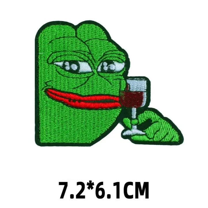 Pepe The Frog 'Holding Wine Glass' Embroidered Patch Description: