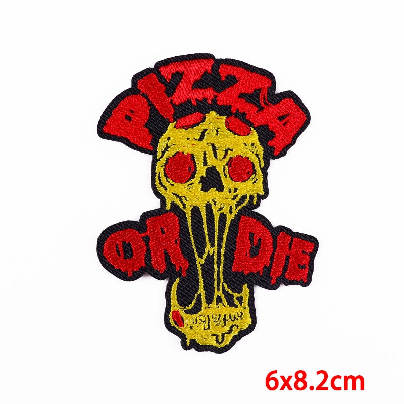 Pepperoni Skull 'Pizza Or Die' Embroidered Patch Description: