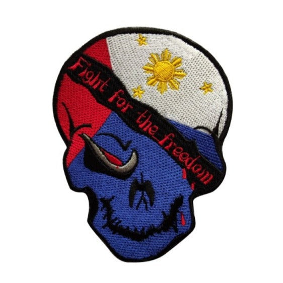 Philippine Flag Skull 'Fight For The Freedom' Embroidered Sew On Velcro Patch Description: