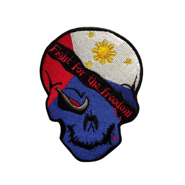 Order your Philippine Flag Skull 'Fight For The Freedom' Embroidered Sew On Velcro Patch today!