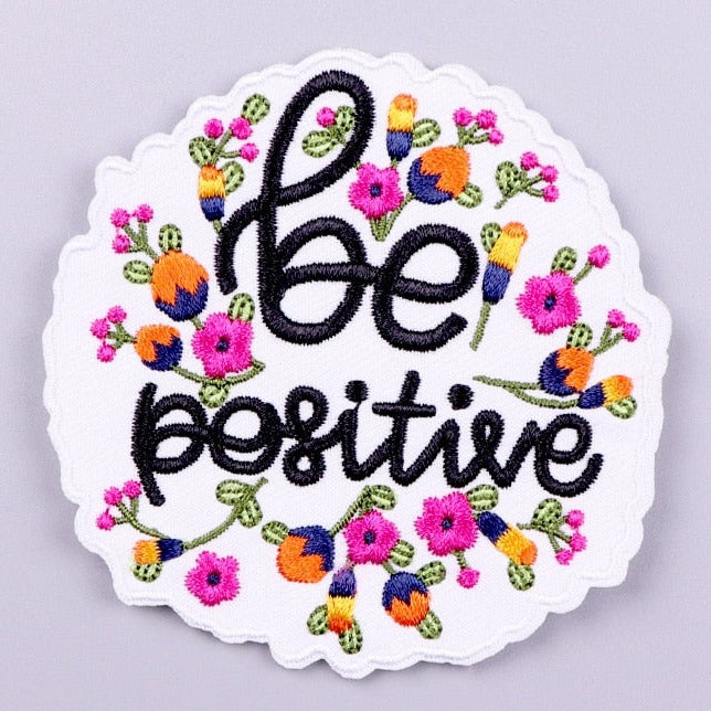 Quote 'Be Positive | Floral' Embroidered Patch Description: