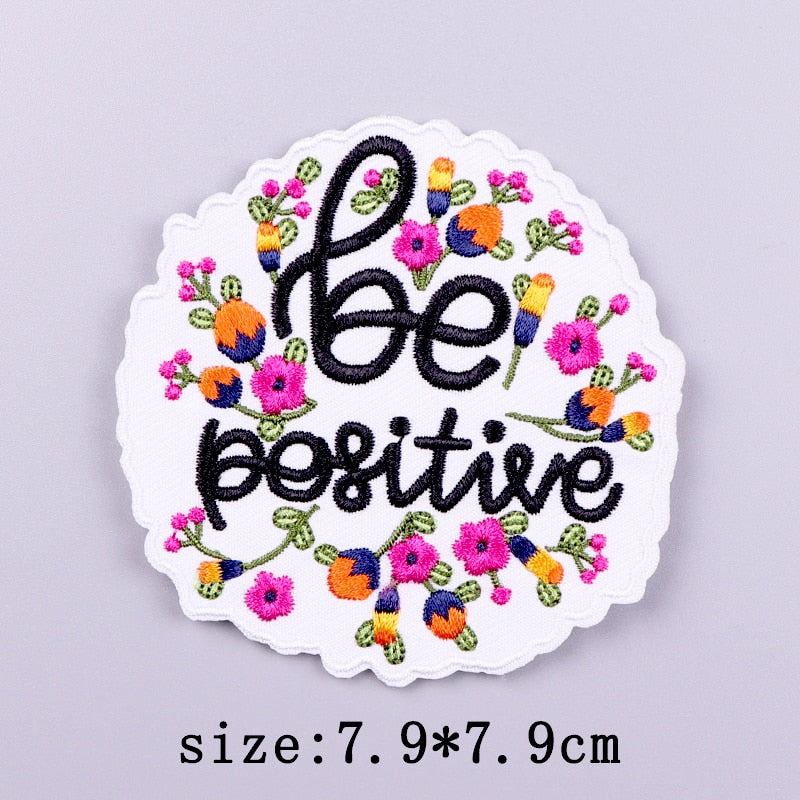 We recommend sewing on this Quote 'Be Positive | Floral' Embroidered Patch for jackets, vests and heavy duty use. This Quote 'Be Positive | Floral' Embroidered Patch can be ironed on to denim items.