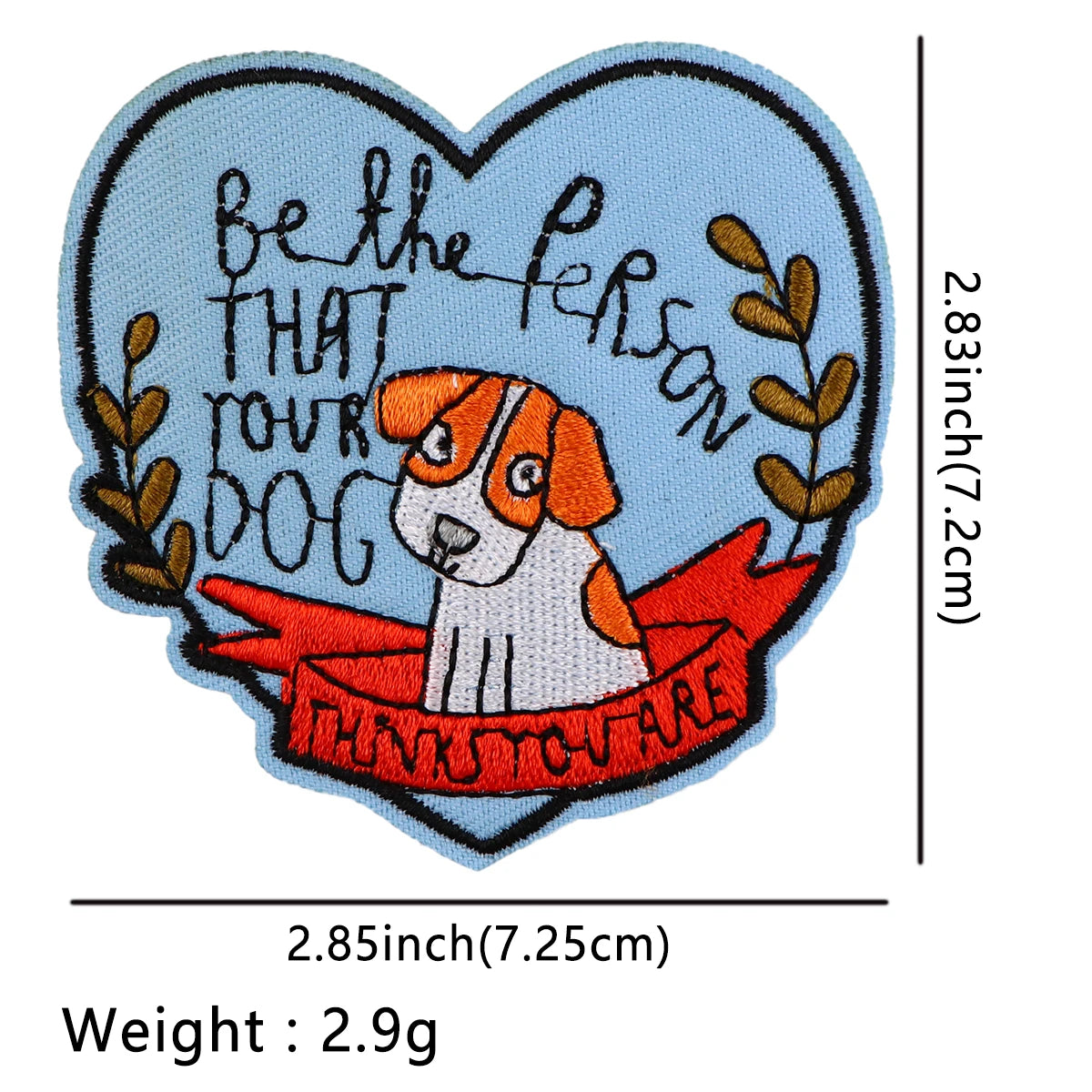 We recommend sewing on this Quote 'Be The Person That Your Dog Thinks You Are | 1.0' Embroidered Patch for jackets, vests and heavy duty use. This Quote 'Be The Person That Your Dog Thinks You Are | 1.0' Embroidered Patch can be ironed on to denim items.