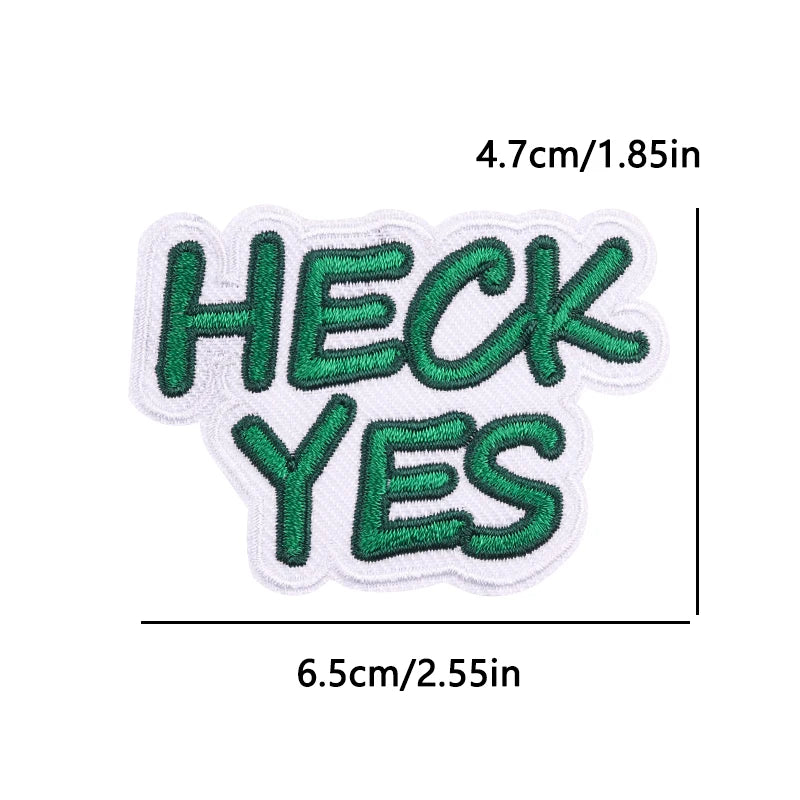 Quote 'Heck Yes' Embroidered Patch Description: