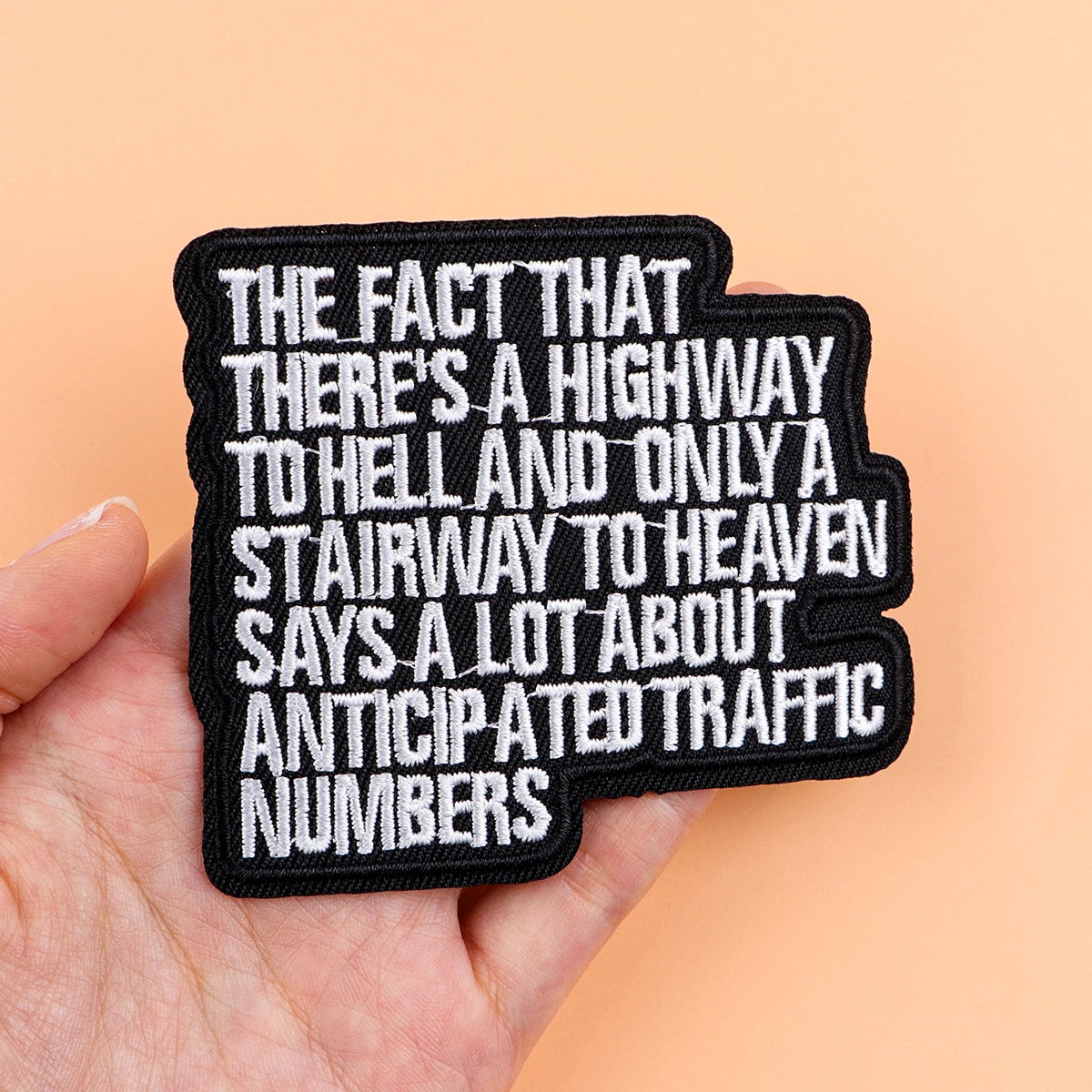 Quote 'Highway to Hell and Stairway to Heaven' Embroidered Patch
