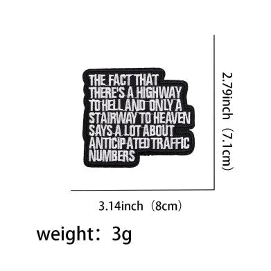 Quote 'Highway to Hell and Stairway to Heaven' Embroidered Patch Special Features: