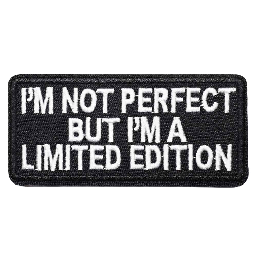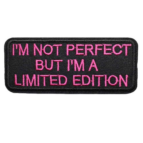 Turn some heads with our Quote 'I'm Not Perfect But I'm A Limited Edition' Embroidered Patch! Our Quote 'I'm Not Perfect But I'm A Limited Edition' Embroidered Patch is great for adding to denim jackets, bags, and more. Our Quote 'I'm Not Perfect But I'm A Limited Edition' Embroidered Patch is made for the most demanding of necessities.