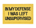 Order your Quote 'In My Defense I Was Left Unsupervised' Embroidered Velcro Patch today!