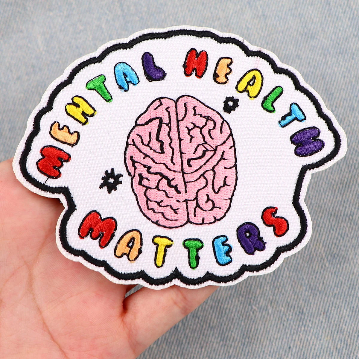 We recommend sewing on this Quote 'Mental Health Matters | Brain 1.0' Embroidered Patch for jackets, vests and heavy duty use. This Quote 'Mental Health Matters | Brain 1.0' Embroidered Patch can be ironed on to denim items.