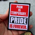 Quote 'Pain Is Temporary, Pride Is Forever.' Embroidered Velcro Patch