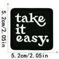 We recommend sewing on this Quote 'Take It Easy' Embroidered Patch for jackets, vests and heavy duty use. This Quote 'Take It Easy' Embroidered Patch can be ironed on to denim items.